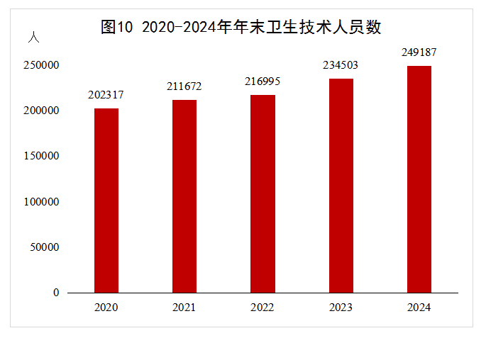 年末全区共有医疗卫生机构26740个。其中,医院861个;基层医疗卫生机构25480个,其中乡镇卫生院1217个,社区卫生服务中心(站)1321个,门诊部1190个,村卫生室12772个;专业公共卫生机构323个,其中疾病预防控制中心118个。卫生技术人员249187人,其中执业医师和执业助理医师100570人,注册护士106855人。医疗卫生机构床位173628张。其中,医院139133张,乡镇卫生院21581张。