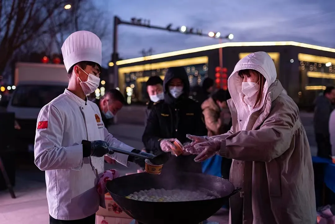 现场支锅搭灶,煮元宵、做面条,机器人现场引流,群众免费品尝,让老百姓感受传统节日美丽与地方美食文化底蕴,唤起游子思乡之情。