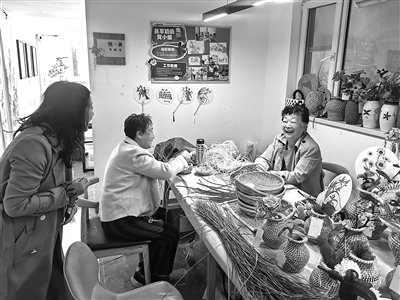 走进“共享奶奶党小组”活动阵地,几位老人正在用自己采集的莎草编织筐子。78岁的居民刘慧说:“我们几个老伙伴来自五湖四海,现在能聚在社区也是缘分。大家一起编筐子,再拿去义卖。”