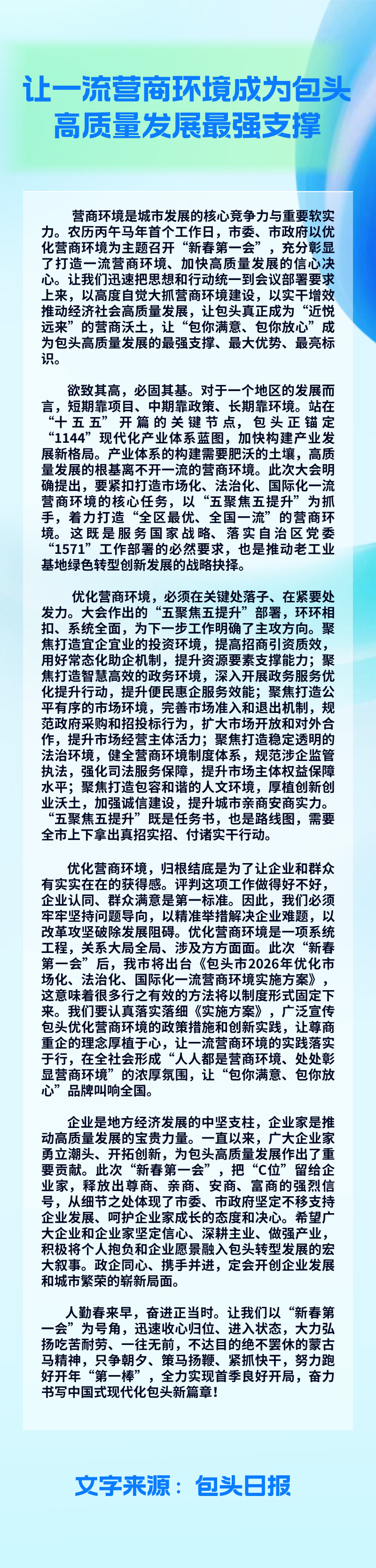让一流营商环境成为包头高质量发展最强支撑