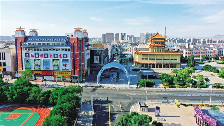 红山区新华步行街航拍。 红山区融媒体中心供图