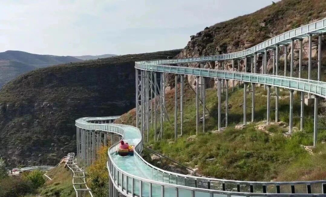 峡谷蜿蜒曲折,峭壁千仞,上方飞拉达的绳索上,热爱冒险的人们全副武装,努力向前方攀爬着。对岸的老牛湾峡谷上,临省的钟楼在光影交错的山林里探出了头,烽火台上的年轻人放肆呼喊着,欢快的声音划过天空,晃晃悠悠从远方飘过来……