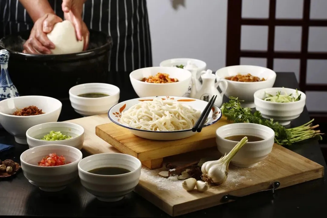 特点:面条粗细均匀,雪花粉光滑有筋度,再浇上河套农家猪肉臊子,风味独特。