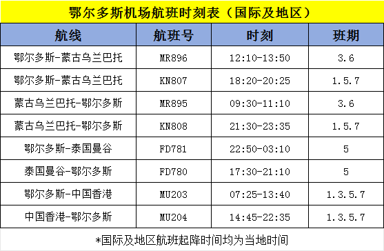 国际及地区航班时刻表