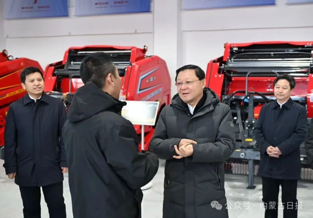 3月31日,自治区党委书记、人大常委会主任王伟中在玖嘉机械设备制造公司调研农牧机械装备研发制造、企业生产经营等情况。草原云·内蒙古新闻网记者 马建兵 摄