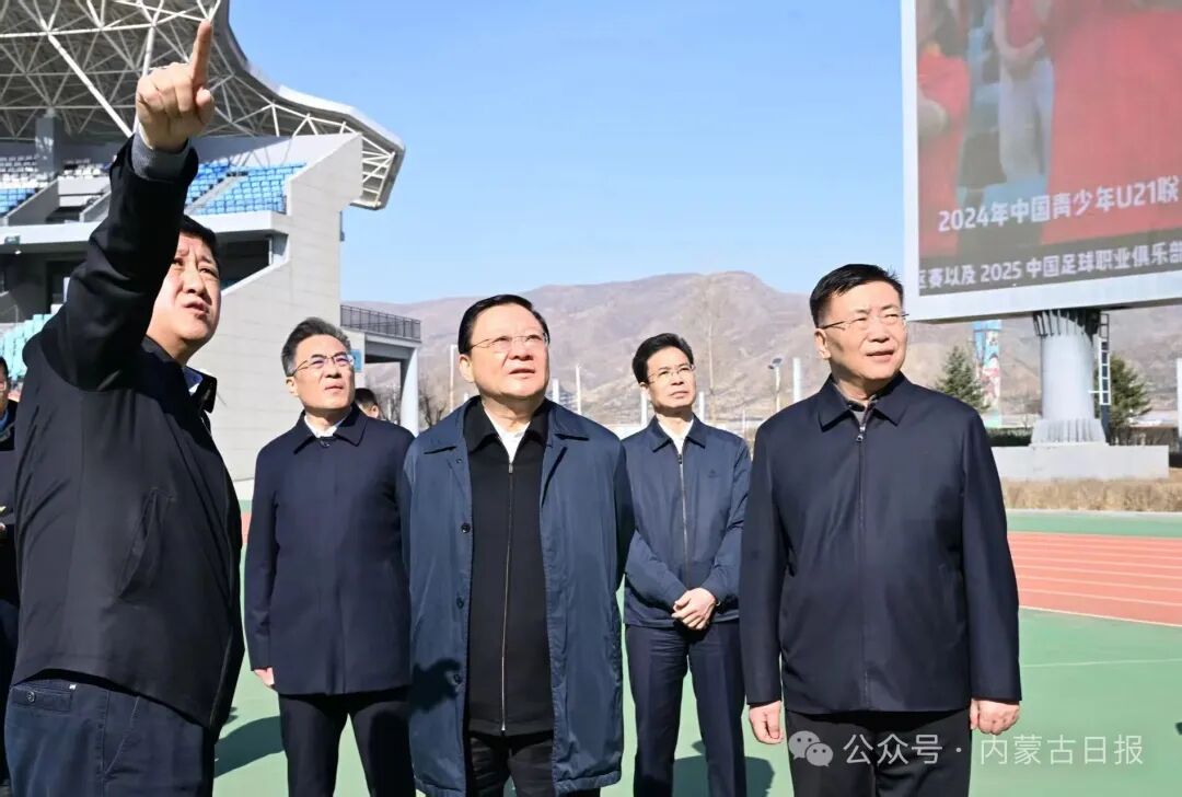 4月2日,自治区党委书记、人大常委会主任王伟中,自治区党委副书记、自治区人民政府主席包钢来到国家(北方)足球训练基地和足球场,详细了解足球工作和相关设施盘活利用情况。草原云·内蒙古新闻网记者 马建兵 摄