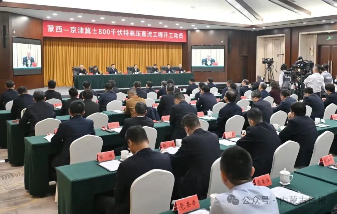 12月30日,蒙西至京津冀±800千伏特高压直流工程开工动员活动在内蒙古、河北两地以视频连线形式同步举行。自治区党委书记、人大常委会主任王伟中在内蒙古会场出席。12月30日,蒙西至京津冀±800 千伏特高压直流工程开工动员活动在内蒙古、河北两地以视频连线形式同步举行。自治区党委书记、人大常委会主任王伟中在内蒙古会场出席。草原云·内蒙古新闻网记者  马建兵 摄国家电网有限公司董事长、党组书记张智刚,自治区党委副书记、自治区人民政府主席包钢在内蒙古会场先后致辞。河北省委副书记、省长王正谱在河北会场致辞。自治区领导黄志强、于立新在内蒙古会场出席。国家电网有限公司总经理、党组副书记张文峰,河北省人民政府副省长赵大春在河北会场出席。12月30日,王伟中、张智刚、包钢在内蒙古会场,王正谱、张文峰、赵大春在河北会场共同启动工程开工装置。草原云·内蒙古新闻网记者 马建兵 摄王伟中、张智刚、包钢在内蒙古会场,王正谱、张文峰、赵大春在河北会场共同启动工程开工装置。据了解,蒙西至京津冀±800千伏特高压直流工程是内蒙古首条“沙戈荒”新能源大基地输出通道,工程起于内蒙古鄂尔多斯市达拉特换流站,途经内蒙古、山西,止于河北沧州换流站,输电距离700公里,计划2027年建成投运。工程建成后,每年可向华北负荷中心输送电量超360亿千瓦时,将有效扩大我区电力外送规模,有力促进华北地区能源结构绿色转型和节能减排,对于服务京津冀高质量发展、保障国家能源安全具有重要意义。