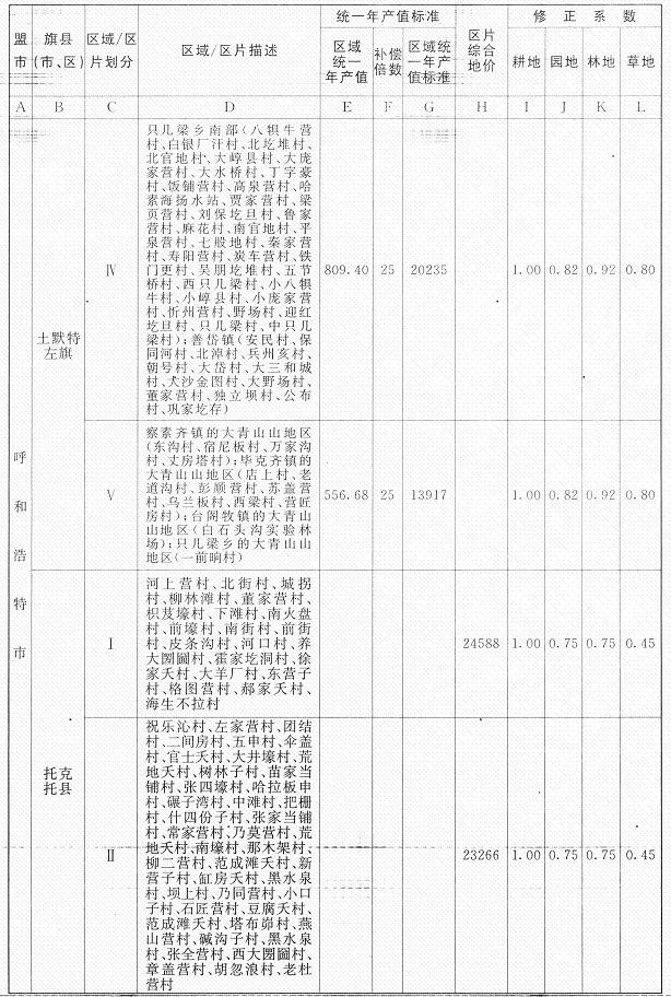 为深入贯彻落实《国务院关于深化改革严格土地管理的决定》(国发〔2004〕28号)精神,进一步加强征地补偿安置工作,经自治区人民政府同意,决定公布自治区征地统一年产值标准和征地区片综合地价(以下简称新征地补偿标准),并于自2012年1月1日起施行。现将有关事宜通知如下: