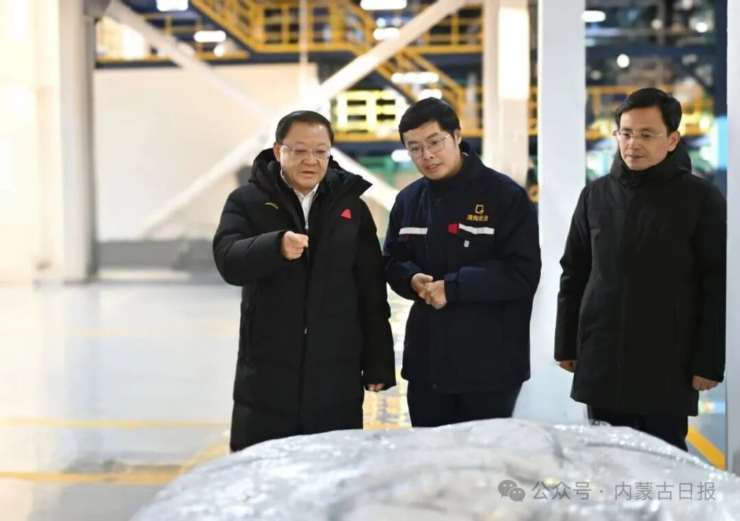 11月18日,自治区党委书记王伟中来到内蒙古东源科技集团有限公司,了解工艺流程和企业生产经营情况。草原云·内蒙古新闻网记者 马建兵 摄