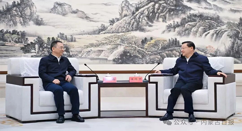 11月11日,自治区党委书记王伟中,自治区党委副书记、自治区人民政府主席包钢在呼和浩特会见国家能源投资集团党组书记、董事长邹磊一行。草原云·内蒙古新闻网记者 马建兵 摄